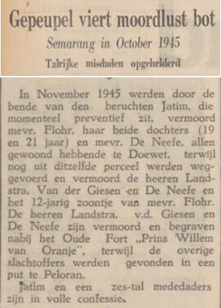 Ook onze familie kreeg te maken met vreselijke gebeurtenissen. In Semarang werd een apothekersfamilie Flohr in stukken gehakt teruggevonden.